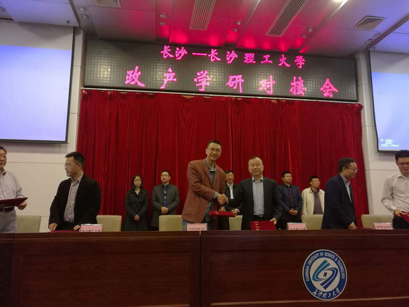 為進(jìn)一步加強(qiáng)長沙與高校的科技合作交流,加快高校的科技成果在長轉(zhuǎn)化,10月13日上午,“長沙-長沙理工大學(xué)政產(chǎn)學(xué)研對(duì)接活動(dòng)”在長沙理工大學(xué)云塘校區(qū)舉行。圖為我公司與長沙理工大學(xué)簽署對(duì)接協(xié)議。